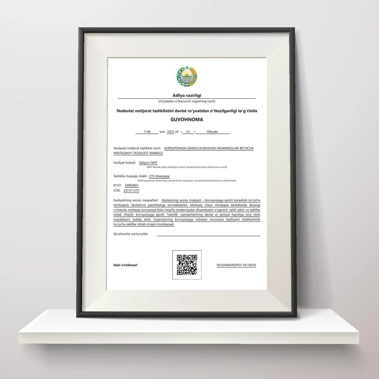 Министерство юстиции зарегистрировало Региональный исследовательский центр по вопросам противодействия коррупции.